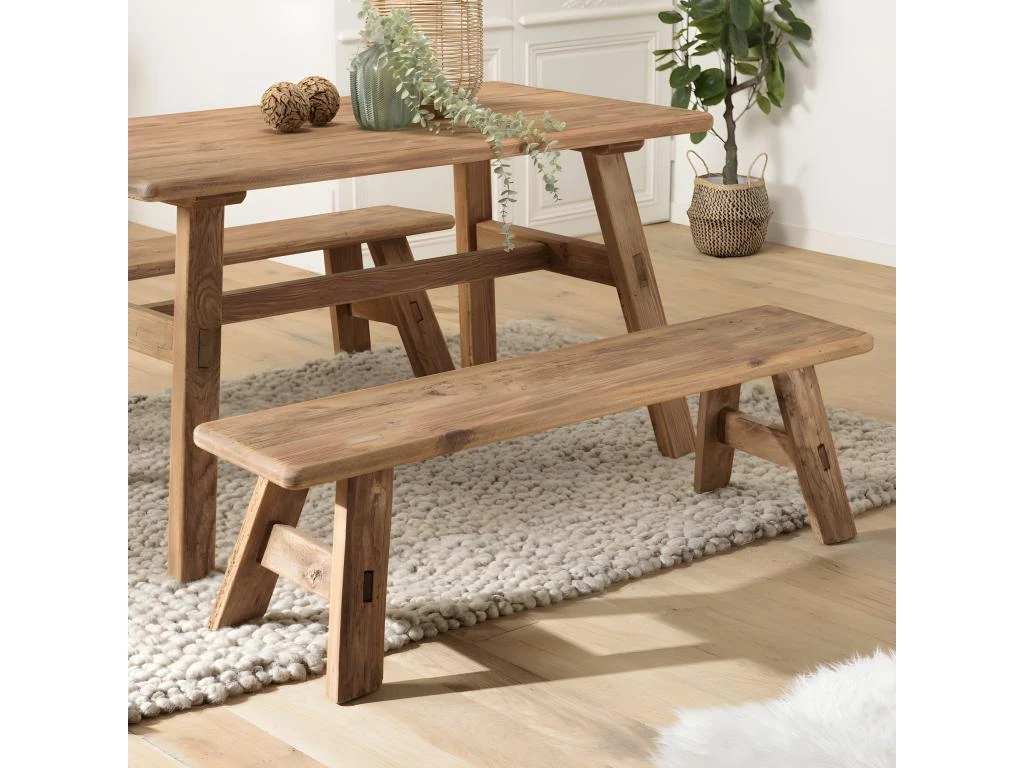 Banc 140x30cm bois Pin recyclé. Dimensions : 140 x 30 x 40 cm. Article en Pin recyclé.