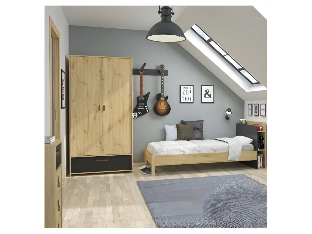 Modernisez sagement votre chambre avec cette armoire 2 portes 1 tiroir contemporaine.