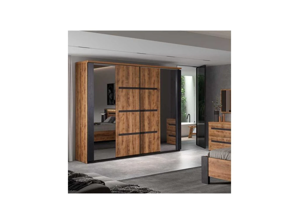 Apportez la chaleur du bois et le style mobilier Industriel dans votre chambre à coucher avec cette armoire 2 portes coulissantes à la signature visuelle exclusive.