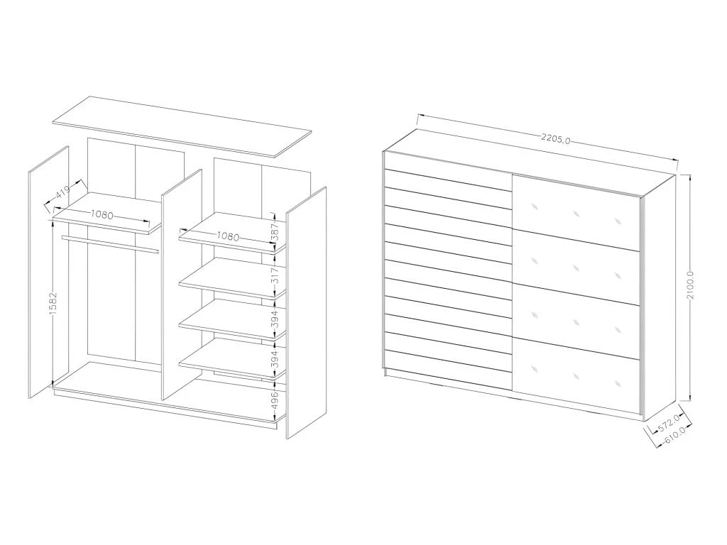 - CARACTÉRISTIQUES : Penderie + étagères.