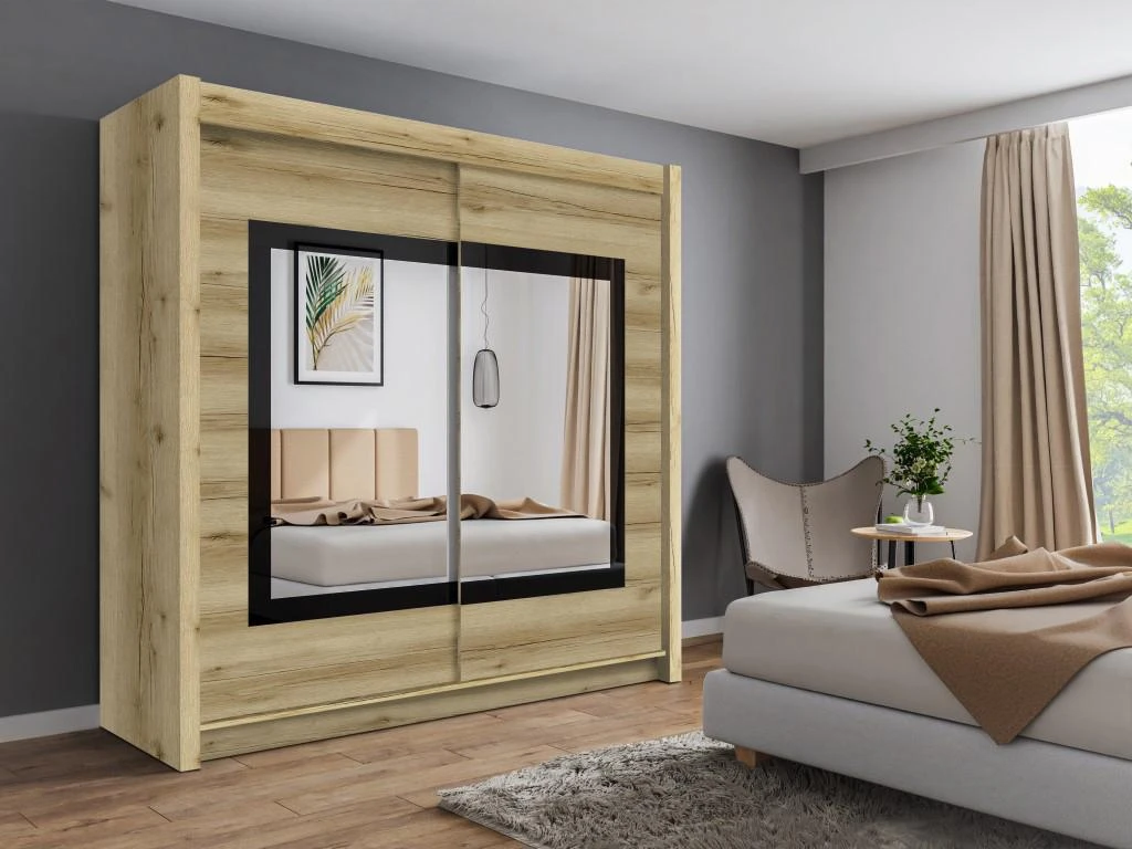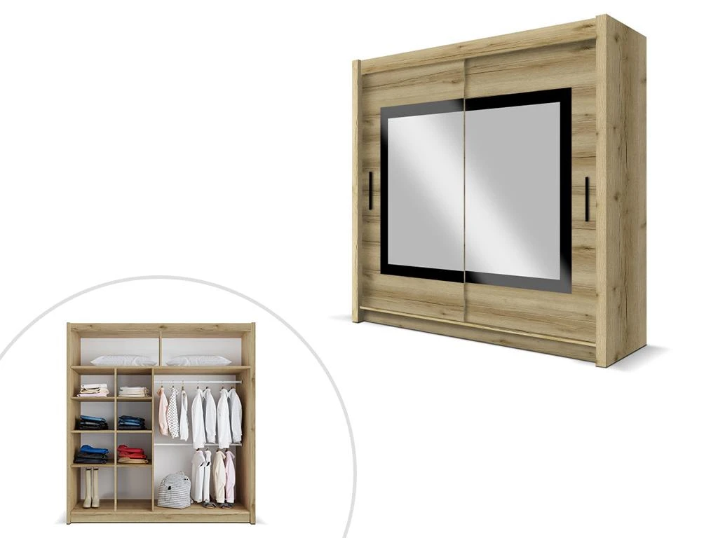 L’armoire AUTLAN vous offre un bel espace de rangements grâce à sa grande penderie et ses nombreuses lingères. Equipée de deux grands miroirs sur les portes coulissantes, vous pourrez facilement vous admirer de haut en bas dans vos plus belles tenues !