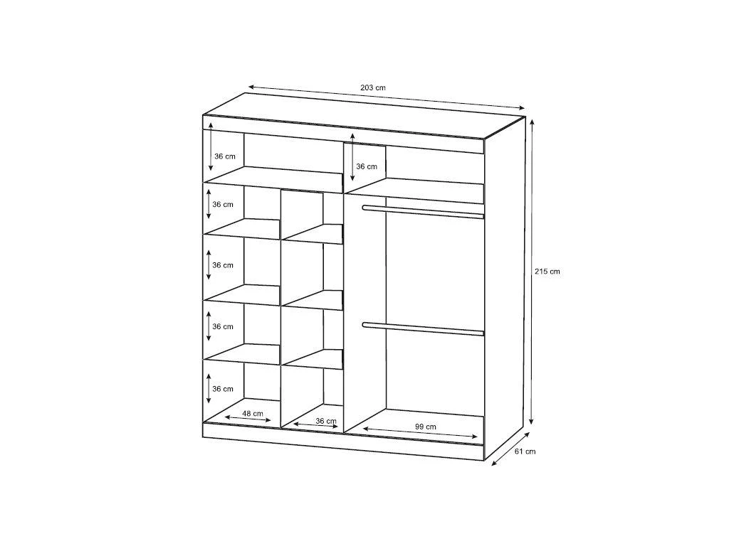 - Hauteur de la penderie haute : 151 cm
