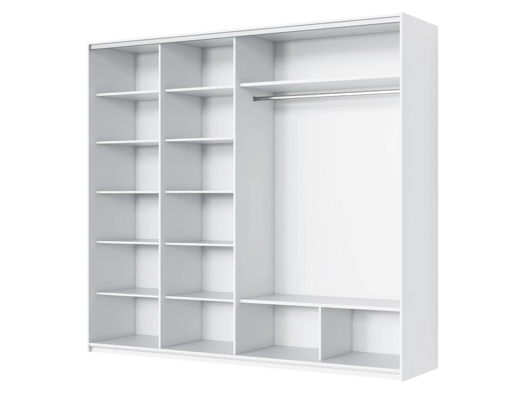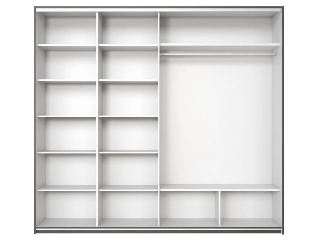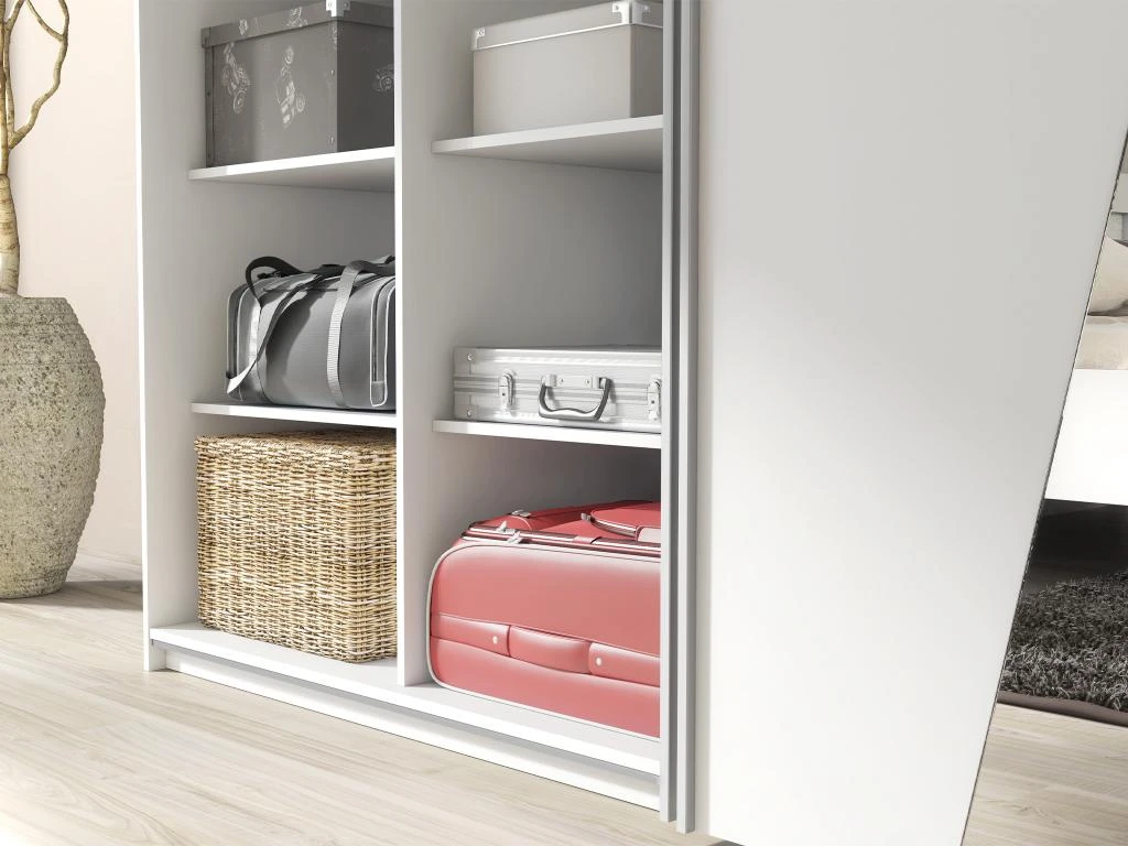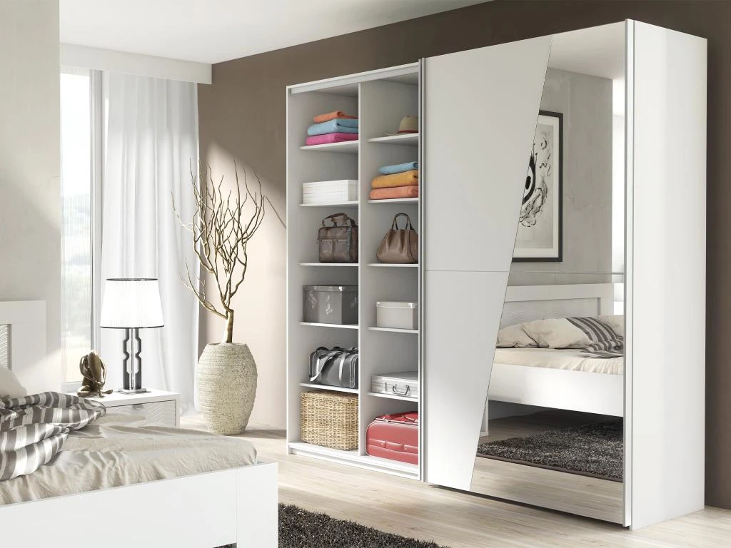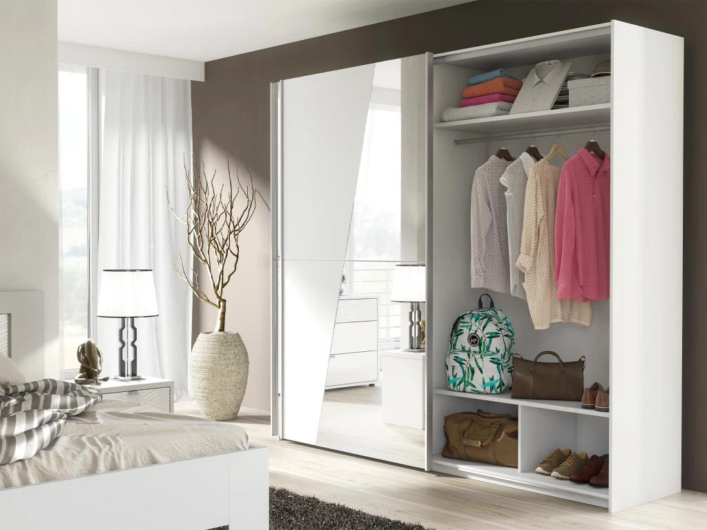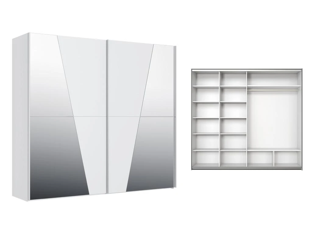 Avec ses miroirs gĂ©omĂ©triques, l’armoire AMERIA apportera de la luminositĂ© Ă votre piĂšce. Ses nombreux rangements, lingĂšres et penderie, vous permettront de ranger l’intĂ©gralitĂ© de vos vĂȘtements Ă votre guise. Plus besoin de faire le tri entre les saisons !