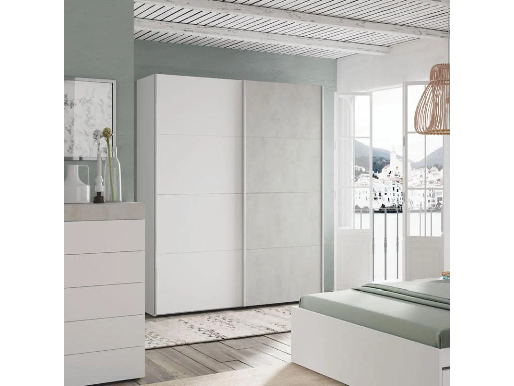 Armoire 2 Portes Coulissantes – Avec Miroir – L231cm – Coloris : Naturel Et Ivoire – ADALRIK II