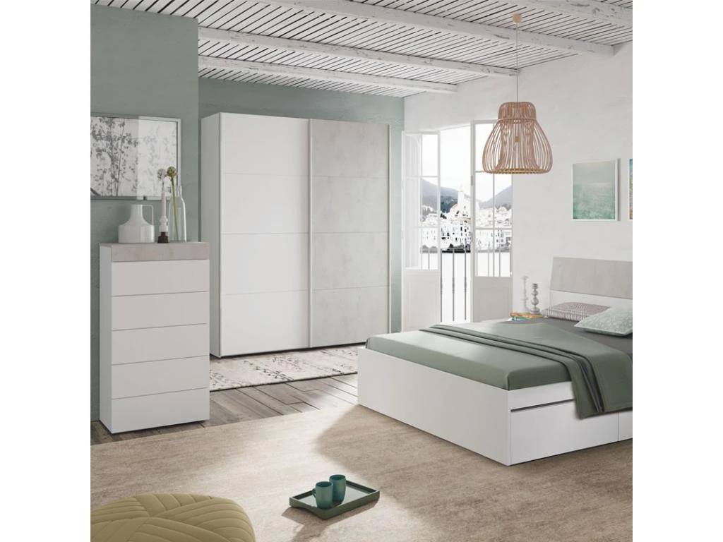 Armoire 200cm. 2 Portes Coulissantes Avec Miroirs Couleur Chêne Clair Et Noir. Collection FOX