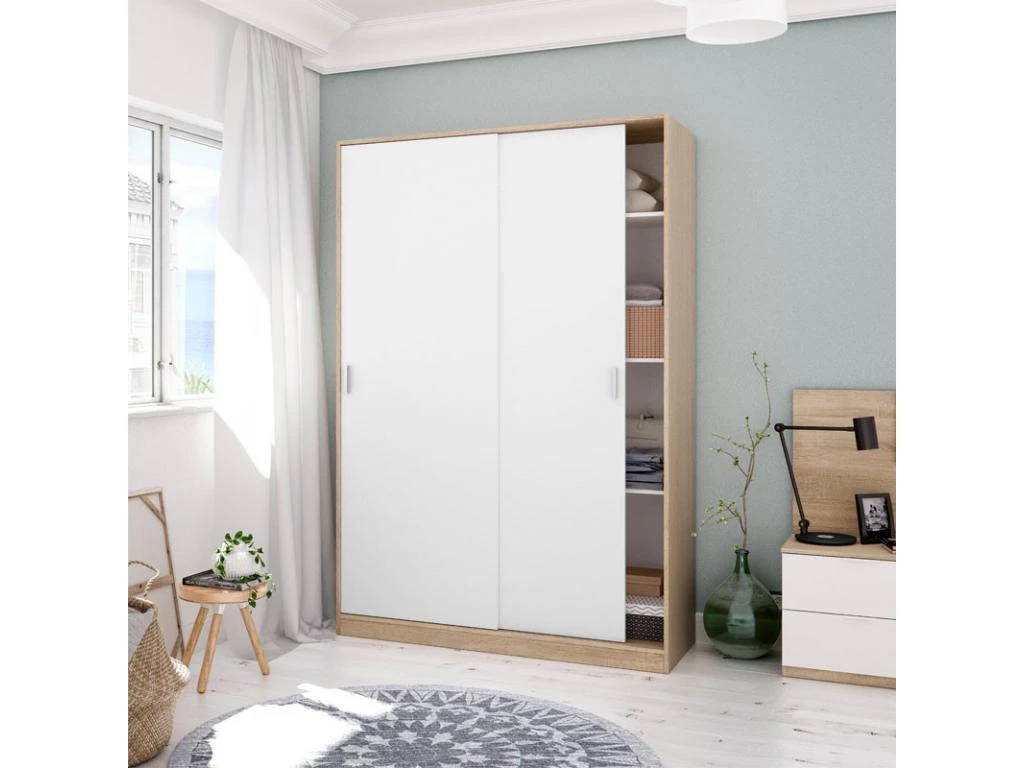 Armoire 2 Portes Coulissantes – Avec Miroir – L231cm – Coloris : Naturel Et Ivoire – ADALRIK II