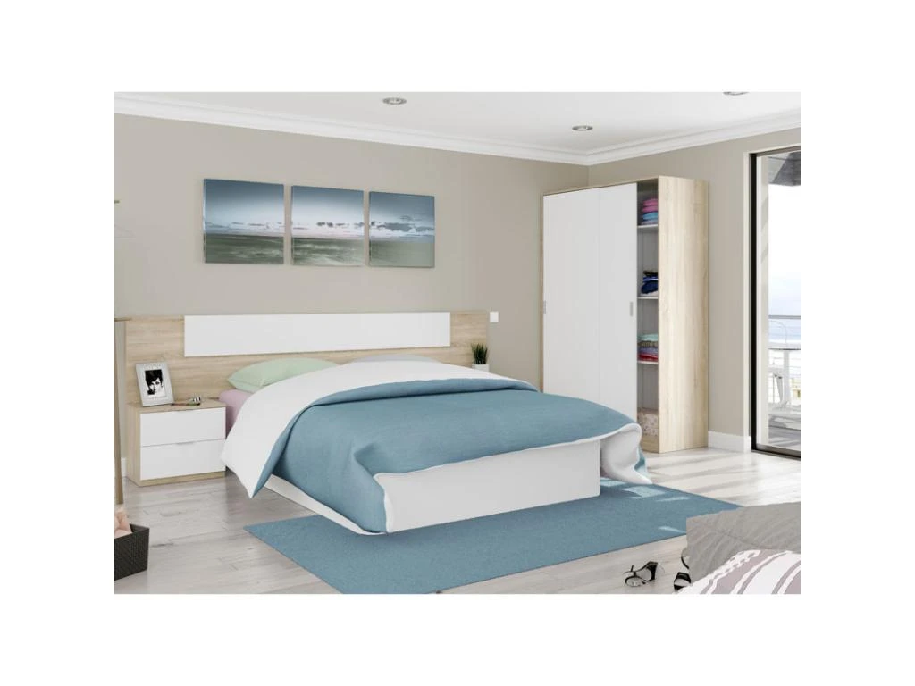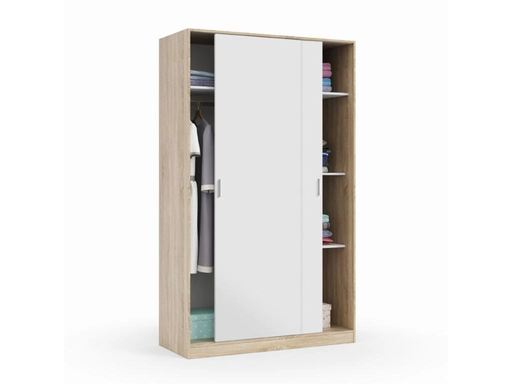 Armoire 200cm. 2 Portes Coulissantes Avec Miroirs Couleur Chêne Clair Et Noir. Collection FOX