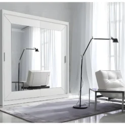 Cette garde robe sublimera votre chambre avec son coloris blanc. Ses grands miroirs seront parfaits pour vos séances d’essayage et apporteront clarté et luminosité à votre chambre. L’intérieur est muni de nombreux espaces : une grande penderie et 10 niches de rangements afin d’en faire un dressing qui accueillera aisément toute votre garde-robe.