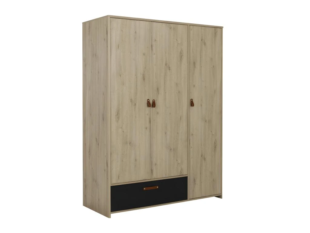 Parfaite pour une chambre au goût du jour et puisant son inspiration dans le mobilier Industriel cette armoire dressing à la taille optimisée met en avant une finition Chêne nature au rendu très probant mis en contraste par une touche de teinte noire et des poignées en cuir véritable.