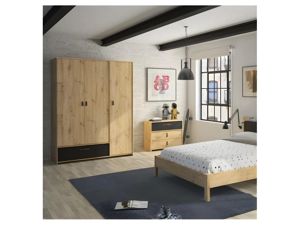 Modernisez sagement votre chambre avec cette armoire 3 portes 1 tiroir contemporaine.