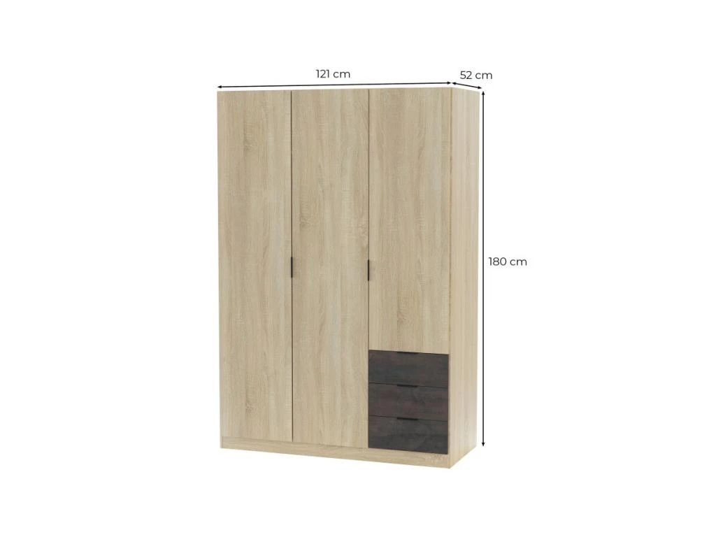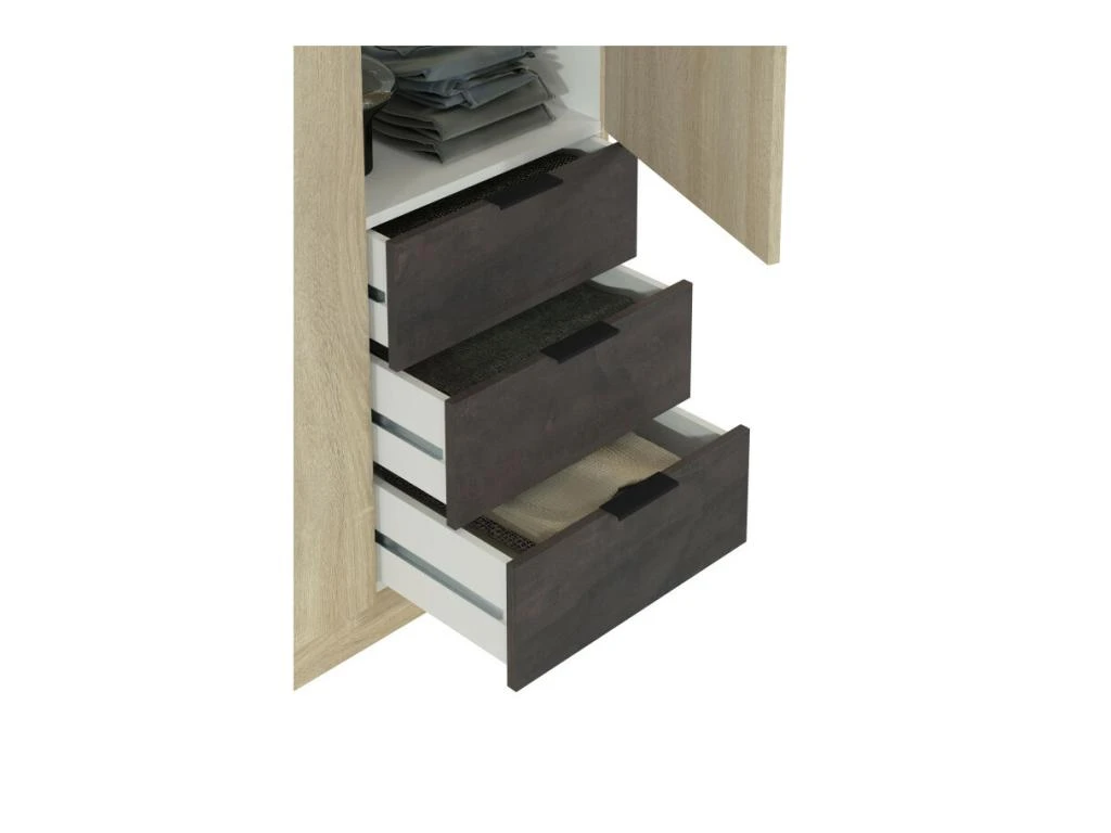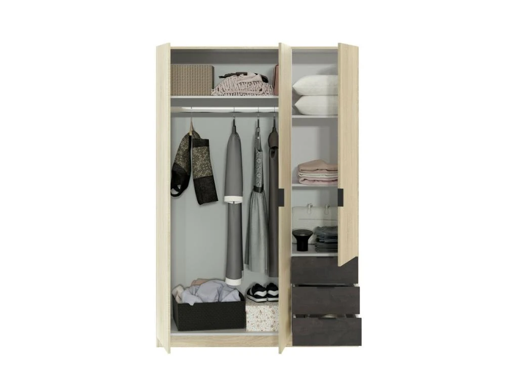 Vous aurez un espace entièrement dédié à vos petites affaires grâce L’armoire 3 portes + 3 tiroirs L121 x H180 cm.