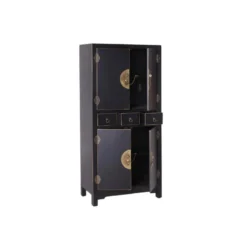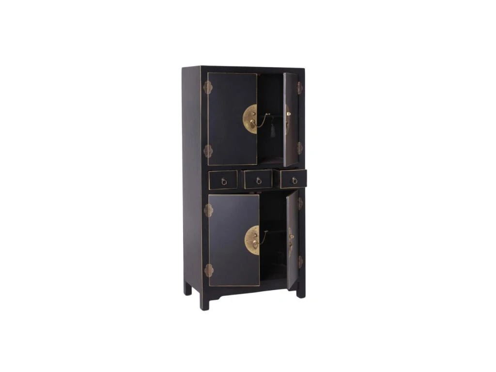 La teinte noire se marie à la quincaillerie dorée, parfaitement raccord avec le style oriental de ce meuble multifonction sobre et élégant.