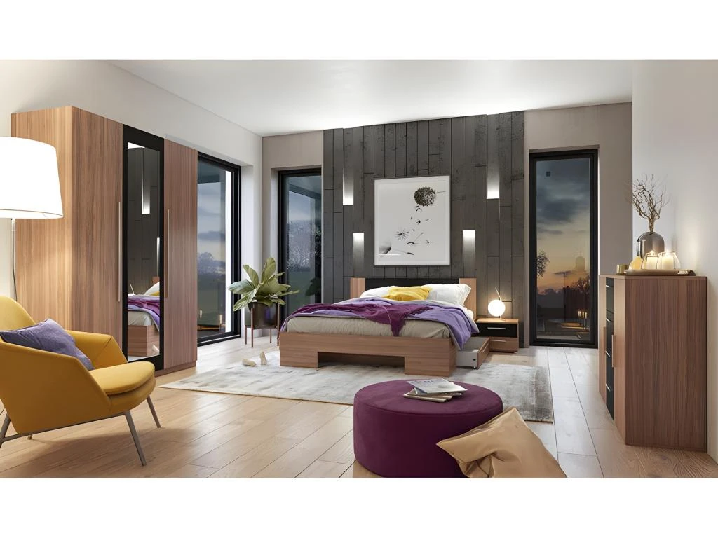 Cette garde robe sublimera votre chambre avec son coloris red wallnut et noir. Composée de 4 portes dont 2 avec miroir. Les 2 grands miroirs intégrés seront parfaits pour vos séances d’essayage et apporteront clarté et luminosité à votre chambre. L’intérieur est muni de nombreux espaces de rangements : 1 grande penderie et 6 étagères afin d’en faire un dressing qui accueillera aisément toute votre garde-robe.