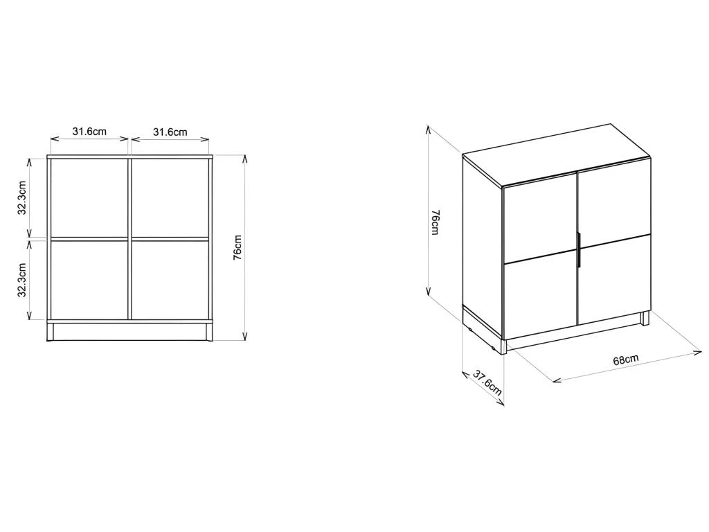 Armoire Basse 2 Portes Blanc Mat 76 cm