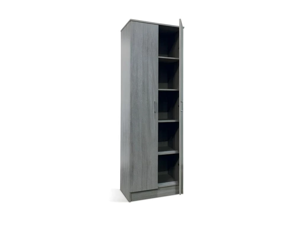 Dressing D’angle Avec Rideau Et 1 Porte – Avec Miroir – L231 Cm – Blanc Et Gris – BERTRAND