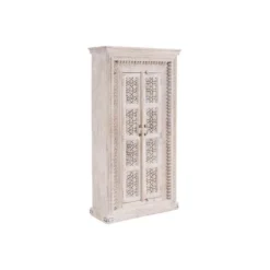 Mettant en oeuvre du bois de Manguier blanchi et sublimée par des sculptures faites à la main, ce très beau meuble de rangement très nettement inspiré des meubles du bout du monde saura apporter de la chaleur dans une chambre ou même moderniser un coin repas classique.