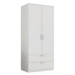 Armoire Dressing BRIXTON 2 Portes 1 Penderie + 2 Tiroirs Blanc