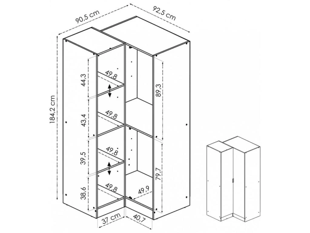 Dimensions : Longueur 90.5 x Profondeur 92.5 x Hauteur 184.2 cm