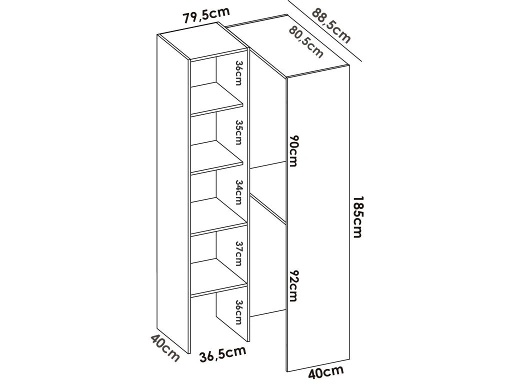 Dimensions : Longueur 79.5 x Profondeur 88.5 x Hauteur 185 cm