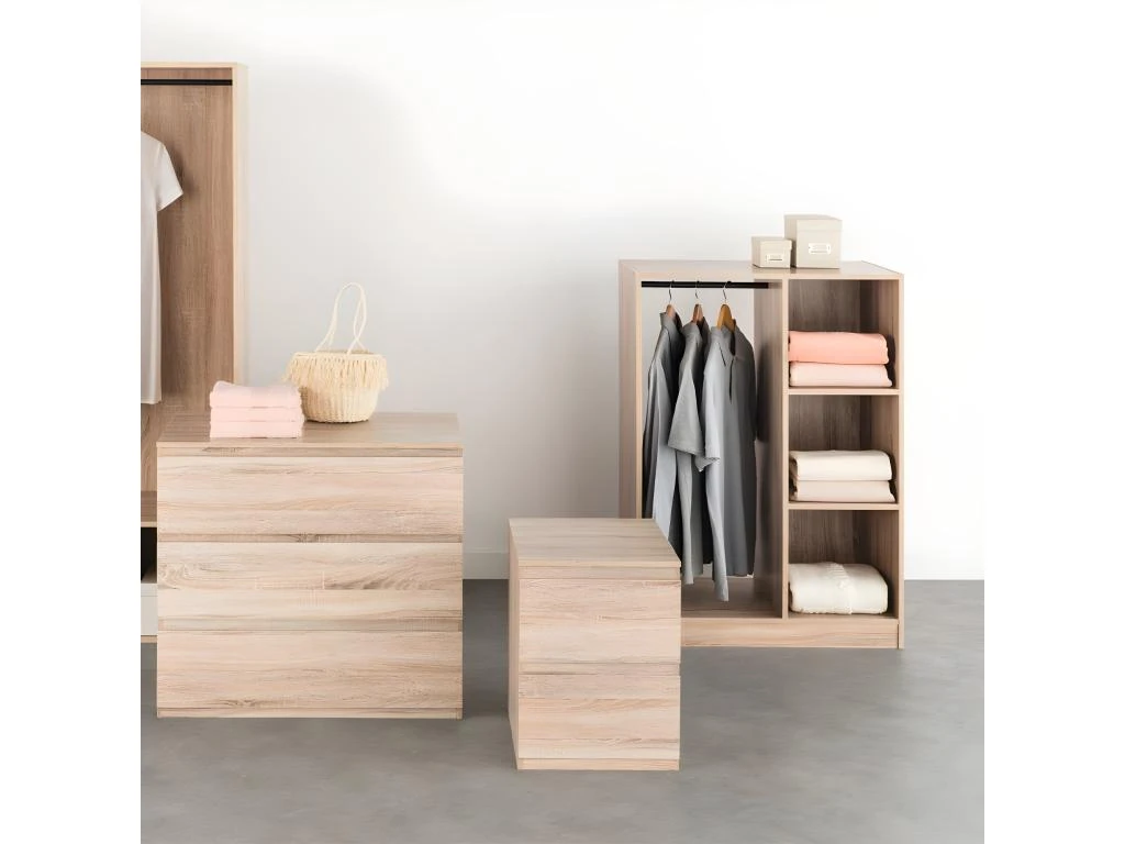 Organisez votre dressing avec ce module penderie et étagères de la marque 5five. Pratique et compact, il s’assemblera facilement avec les autres éléments Mix de la marque 5five. Hauteur entre étagères : 32 cm. A monter soi même. Dimensions : L. 78 x P. 48 x H. 109 cm. Poids : 30 kg. Matière : Panneau particules et métal. Marque : 5five.