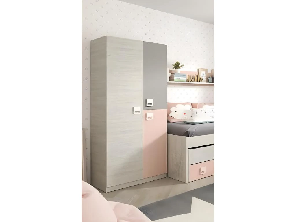 Armoire 200cm. 2 Portes Coulissantes Avec Miroirs Couleur ChĂȘne Clair Et Noir. Collection FOX