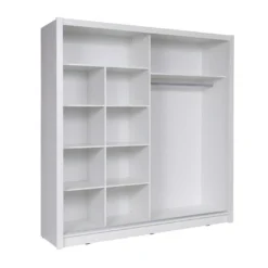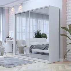 Armoire Collection BAHIA, 2 Portes Coulissantes Avec Miroirs, Penderie Intégrée Coloris Blanc. 205cm