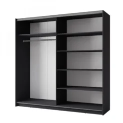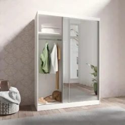 Armoire Blanche 150cm Avec Miroirs, Portes Coulissantes Et Pack étagères. Collection BRISBANE.