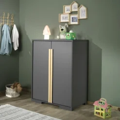 NICE – Dressing Industriel Bois Avec Rideau Noir Et 2 Penderies Et 6 étagères