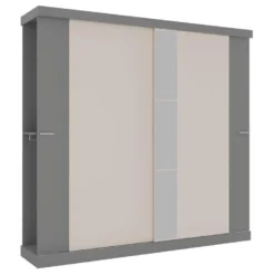 Armoire 2 Portes Coulissantes – Avec Miroir – L231cm – Coloris : Naturel Et Ivoire – ADALRIK II