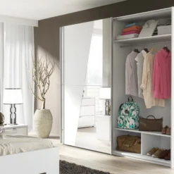 Armoire 2 Portes Coulissantes – Avec Miroir – L203 Cm – Blanc – ROVINJA