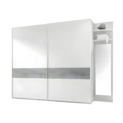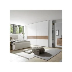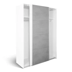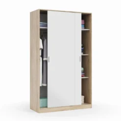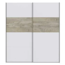 Armoire 2 Portes Coulissantes Blanc/Bois Blanchi – COPIST – L 180 X L 63 X H 200 Cm