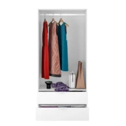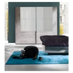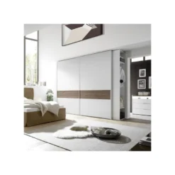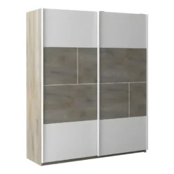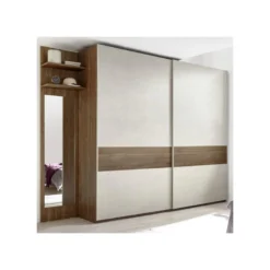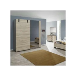 Armoire 200cm. 2 Portes Coulissantes Avec Miroirs Couleur Chêne Clair Et Noir. Collection FOX