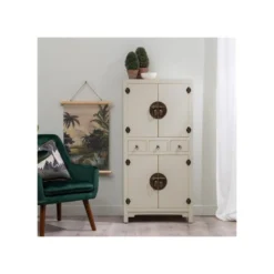 Armoire 4 Portes Battantes Blanc Brillant/Chêne Naturel – MARGUERITE – L 162 X L 52 X H 199 Cm