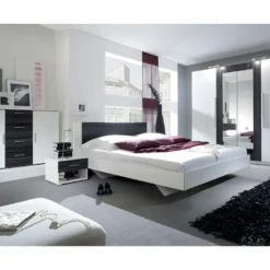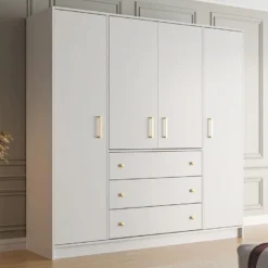 Armoire 4 Portes Battantes Blanc/Marbre Gris Brillant – MARGUERITE – L 162 X L 52 X H 199 Cm