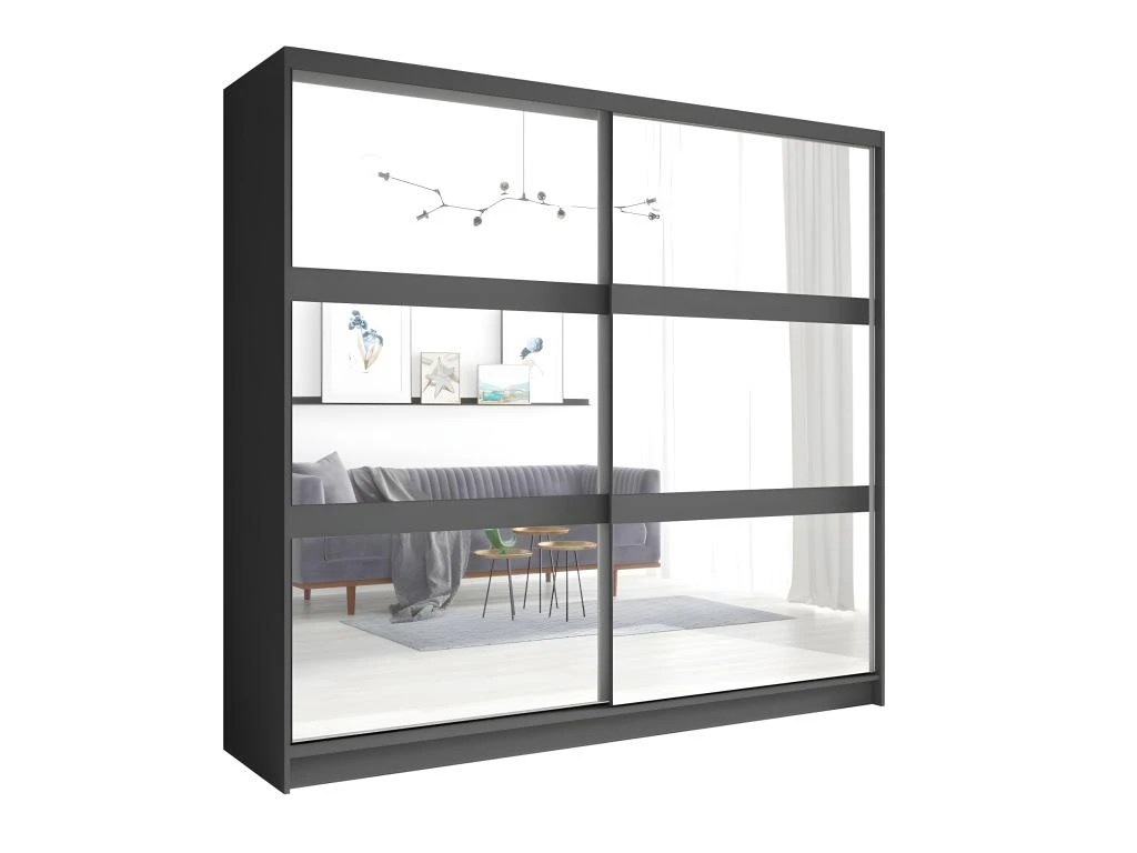 Cette garde robe sublimera votre chambre avec son coloris et son style unique. Composée de 2 portes miroirs, une penderie intégrée et une dizaine de casier de rangement.