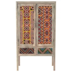 D’une exceptionnelle personnalité, notre armoire Massaï captera le regard par la minutie de son motif. Son coloris multicolore aux teintes chaudes vous transportera au cœur d’un artisanat haut de gamme. Quel que soit votre style, elle vous séduira par son caractère bohème.