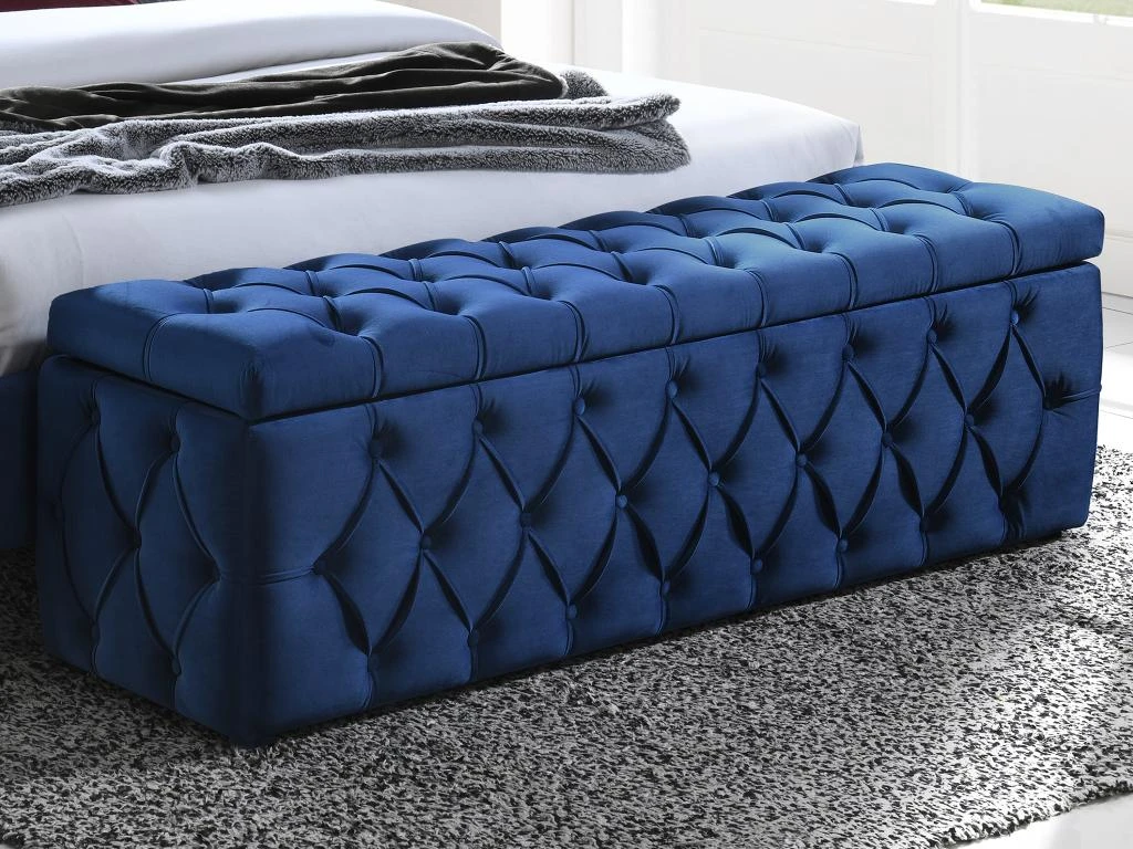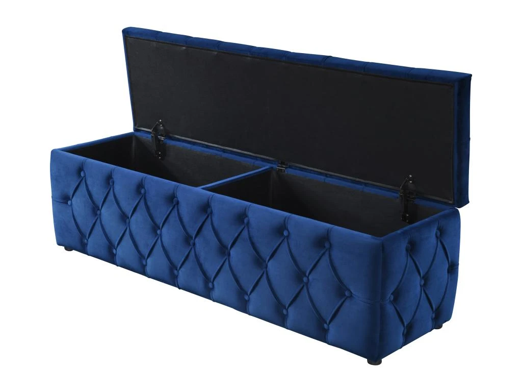 Découvrez l’essence même du charme vintage avec le banc coffre en velours ENODI. Son allure rétro captivante, sublimée par son somptueux revêtement bleu roi, vous transportera instantanément dans une époque glamour et élégante.