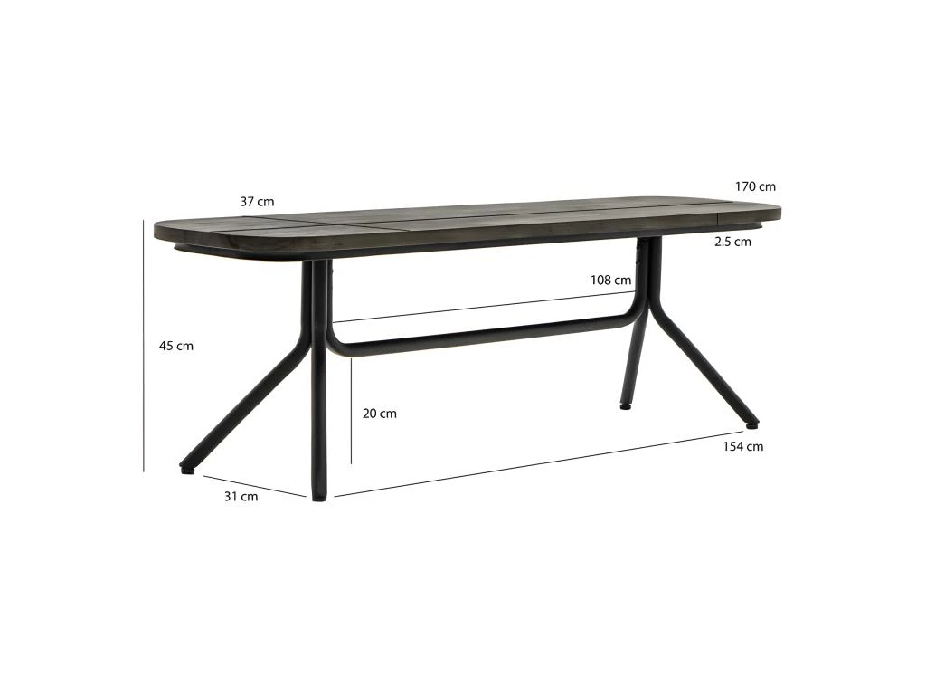 - DIMENSIONS GÉNÉRALES APPROXIMATIVES : Longueur 170 cm x Hauteur 37 cm x Profondeur 45 cm.