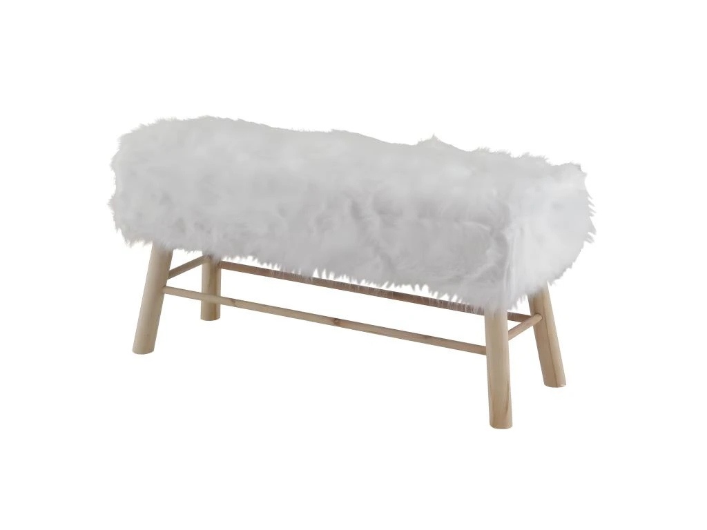 Ce banc en bois en fausse fourrure plaira aux adeptes de style nature et cocooning.