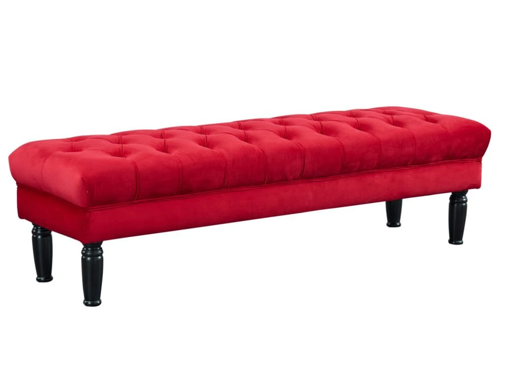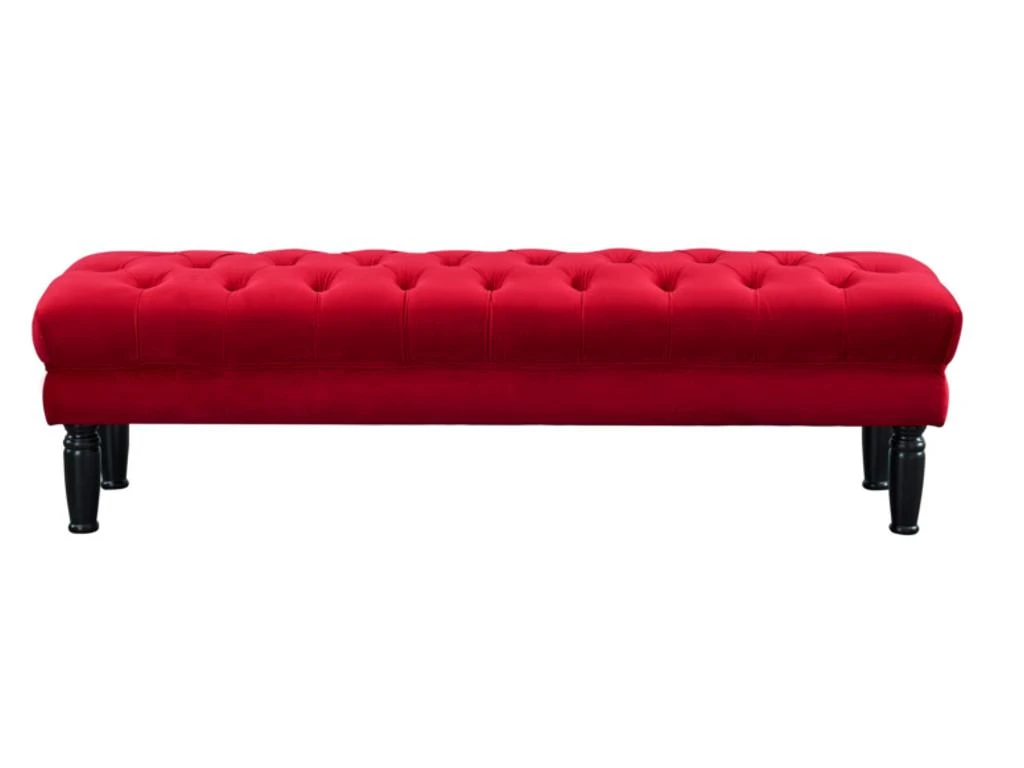 Vous souhaitez donner à votre espace une touche de raffinement et de confort ? Optez pour le banc en velours RINALDO. Ce banc exquis offre une assise capitonnée somptueuse et des pieds en bois noir, fusionnant parfaitement luxe et design fonctionnel.