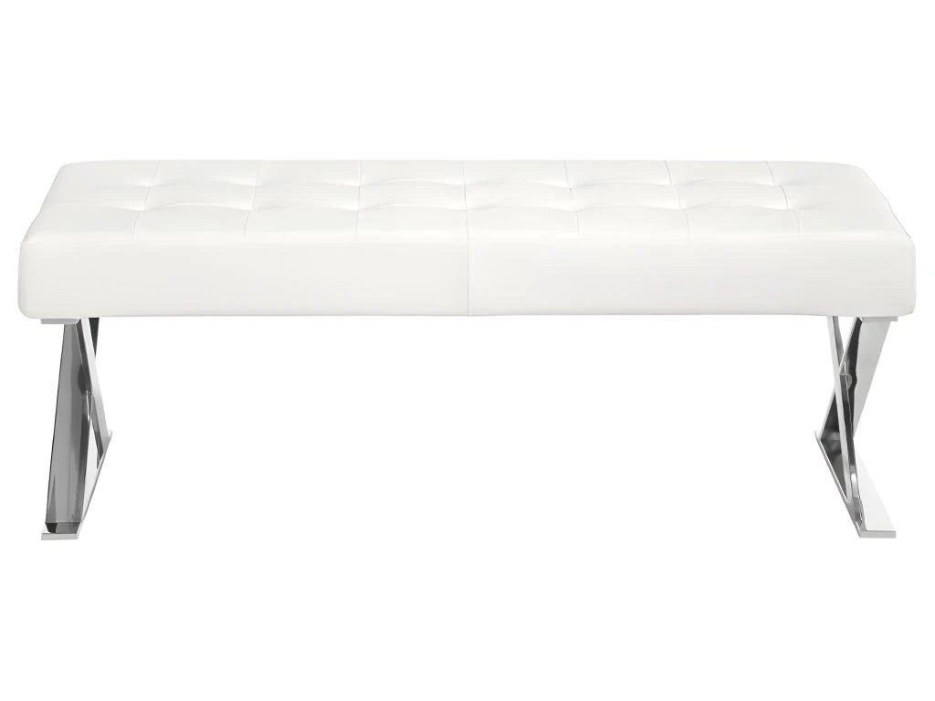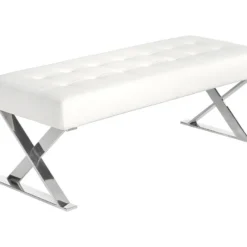 Tabouret de design moderne tapissé en similicuir blanc, avec assise rembourrée en mousse de polyuréthane de 25kg/m3. Sa structure interne robuste en placage de bois de pin MDF de 2 cm, ainsi que sa structure originale de pieds en acier inoxydable chromé de 22 microns, apporteront la touche d’avant-garde et d’élégance que vous recherchez dans votre chambre à coucher. Un banc d’appoint parfait à placer au pied du lit, pour créer une atmosphère chaleureuse et détendue dans votre chambre.