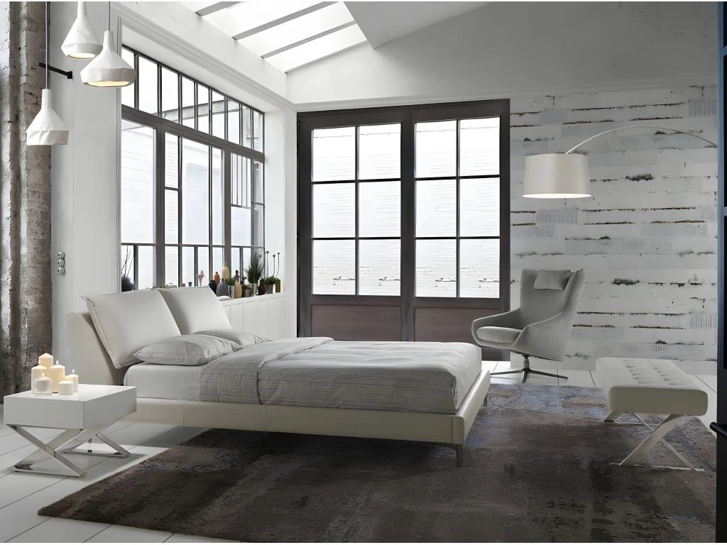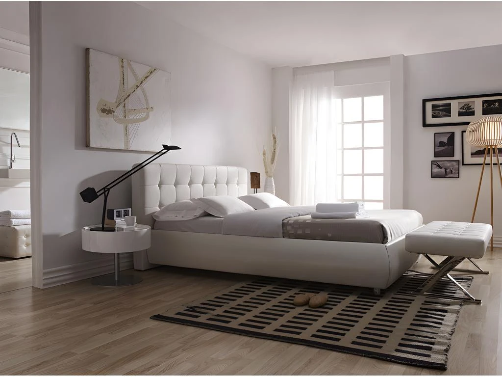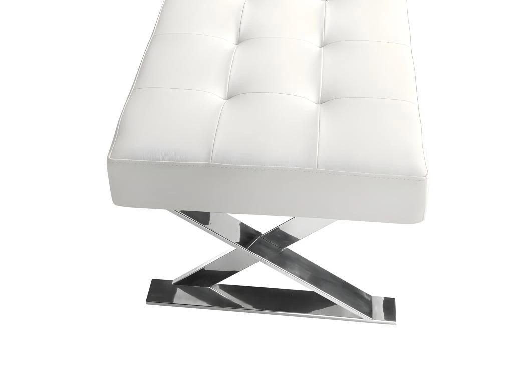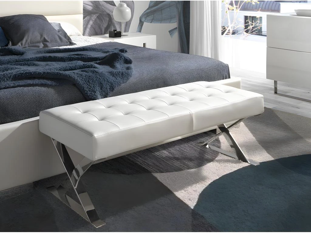 - DÉCORATION ET CONFORT: Grâce à son design minimaliste et élégant, ainsi qu’à la combinaison entre le similicuir blanc et l’acier inoxydable chromé de ses pieds originaux en forme de croix, vous obtiendrez la touche différente et distinctive que vous recherchez pour votre chambre à coucher.