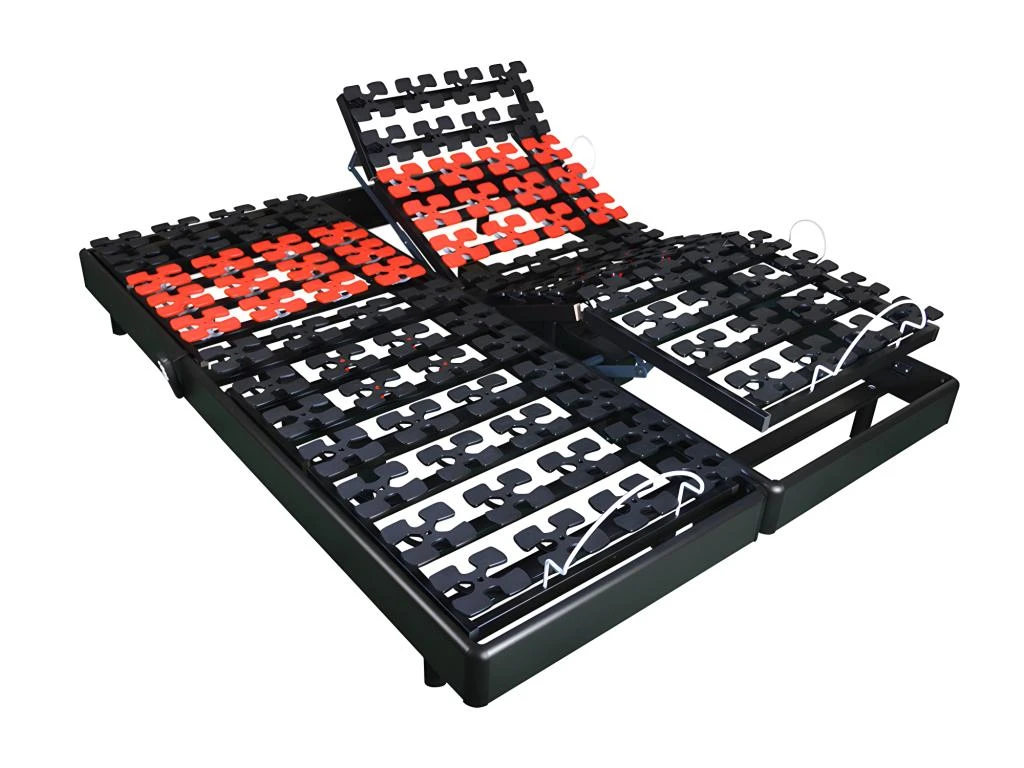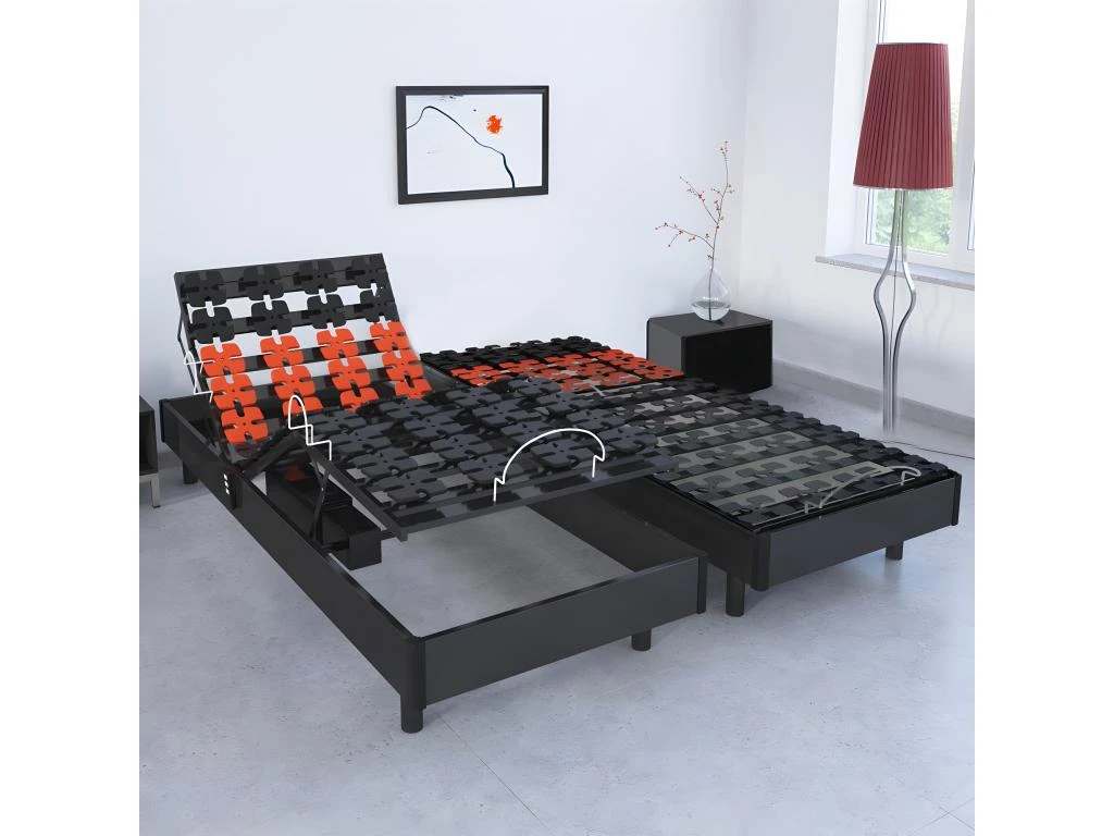- Confort sur-mesure : Fonction relevage tête, buste et/ou jambes + Possibilité de régler la fermeté des plots sur la totalité du sommier grâce à des billes conçues pour (incluses).