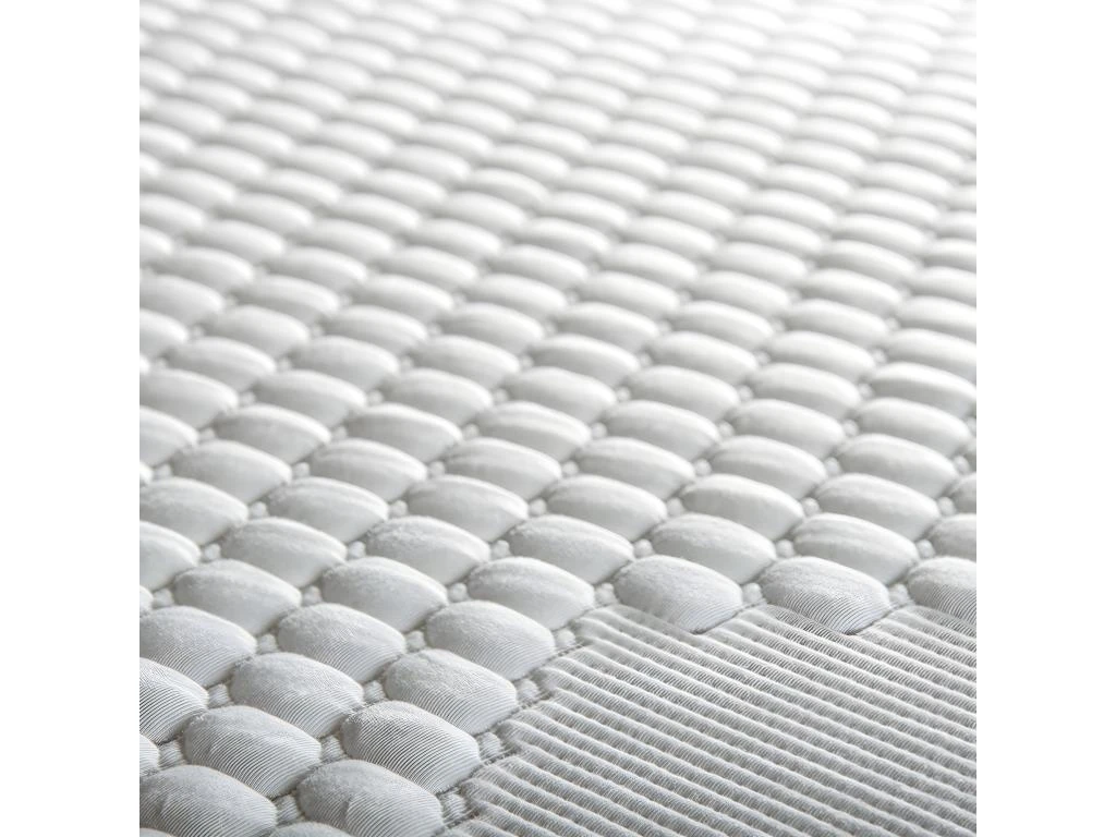- Coutil supérieur (labellisé Oeko-Tex) : Tissu stretch 100 % PES de 300 gr/m² avec face sommier antidérapante