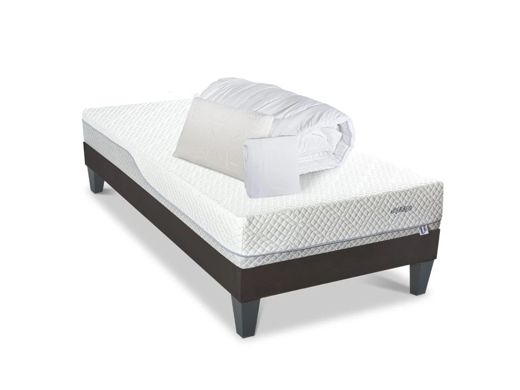 - Âme intérieure (CertiPUR) : 15 cm de mousse Haute Densité de 35 kg/m³ + 5 cm de mousse viscoélastique à mémoire de forme de 60 kg/m³ + 3 cm de mousse hypersoft de 65 kg/m³