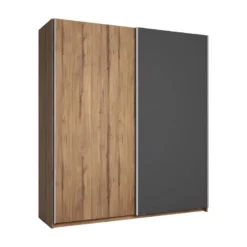 Armoire Penderie 2 Portes Coulissantes Effet Noyer et Gris Anthracite de la gamme Camina.