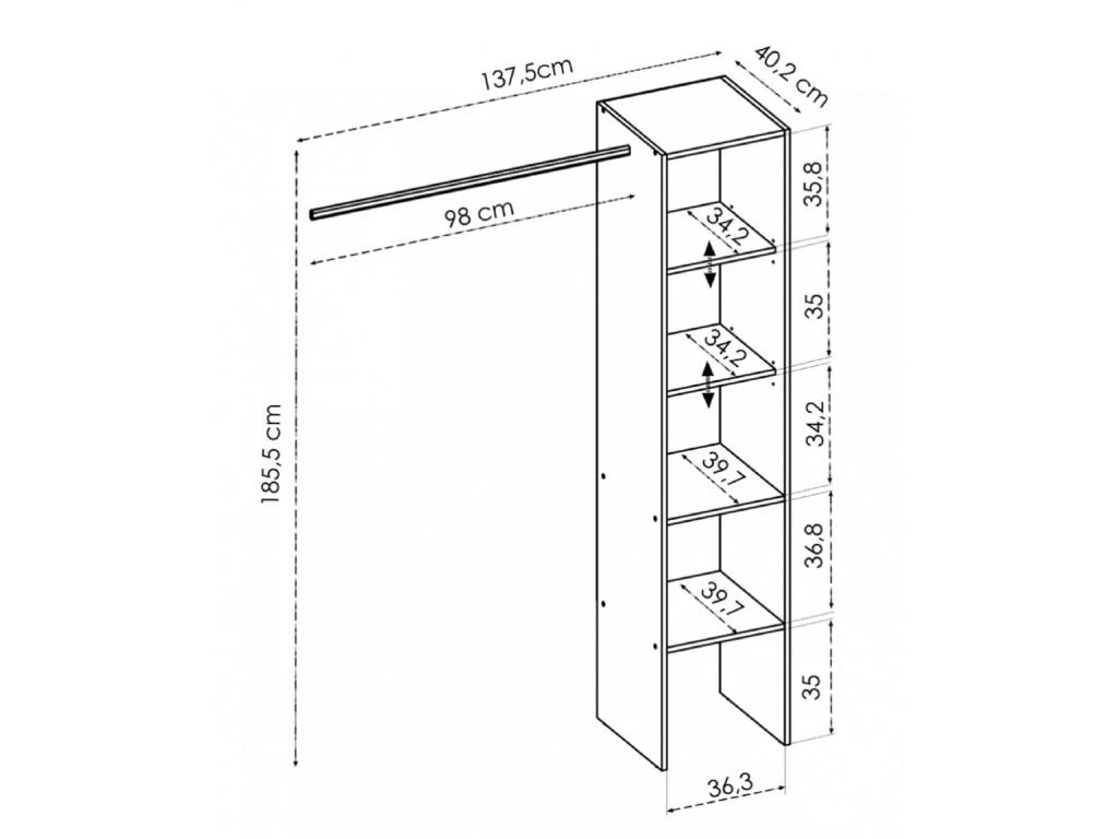 Dimensions : Longueur 137.5 x Profondeur 40.2 x Hauteur 185.5 cm
