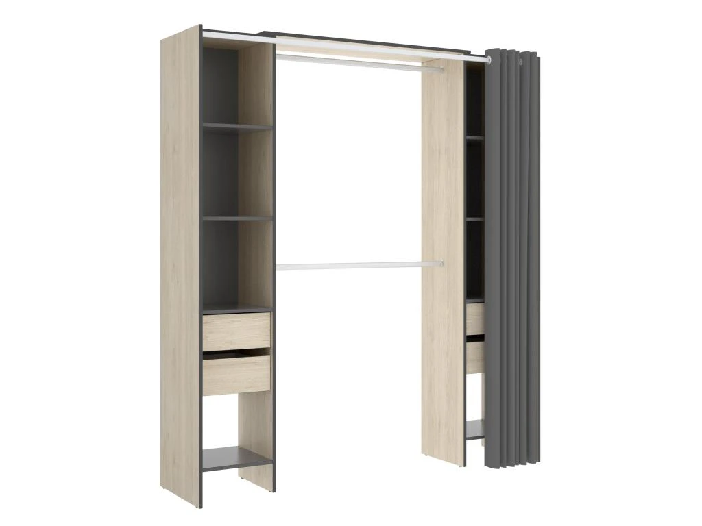 Aménagement Dressing Extensible Chêne/Noir – GARI – L 140/179 X L 48 X H 207 Cm
