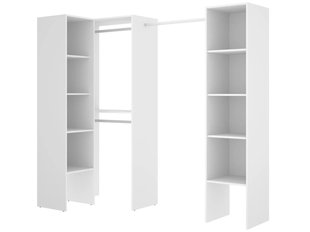 Elysée – Dressing Blanc Extensible Avec 2 Penderies, 4 étagères Et 2 Tiroirs