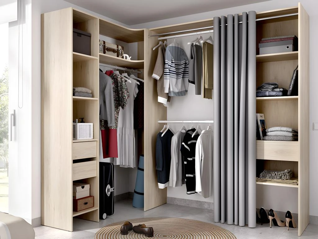 Le dressing GONTRAN vous offre de nombreux rangements pratiques. Niches, tiroirs, penderies vous permettront de disposer facilement vos vêtements et accessoires.